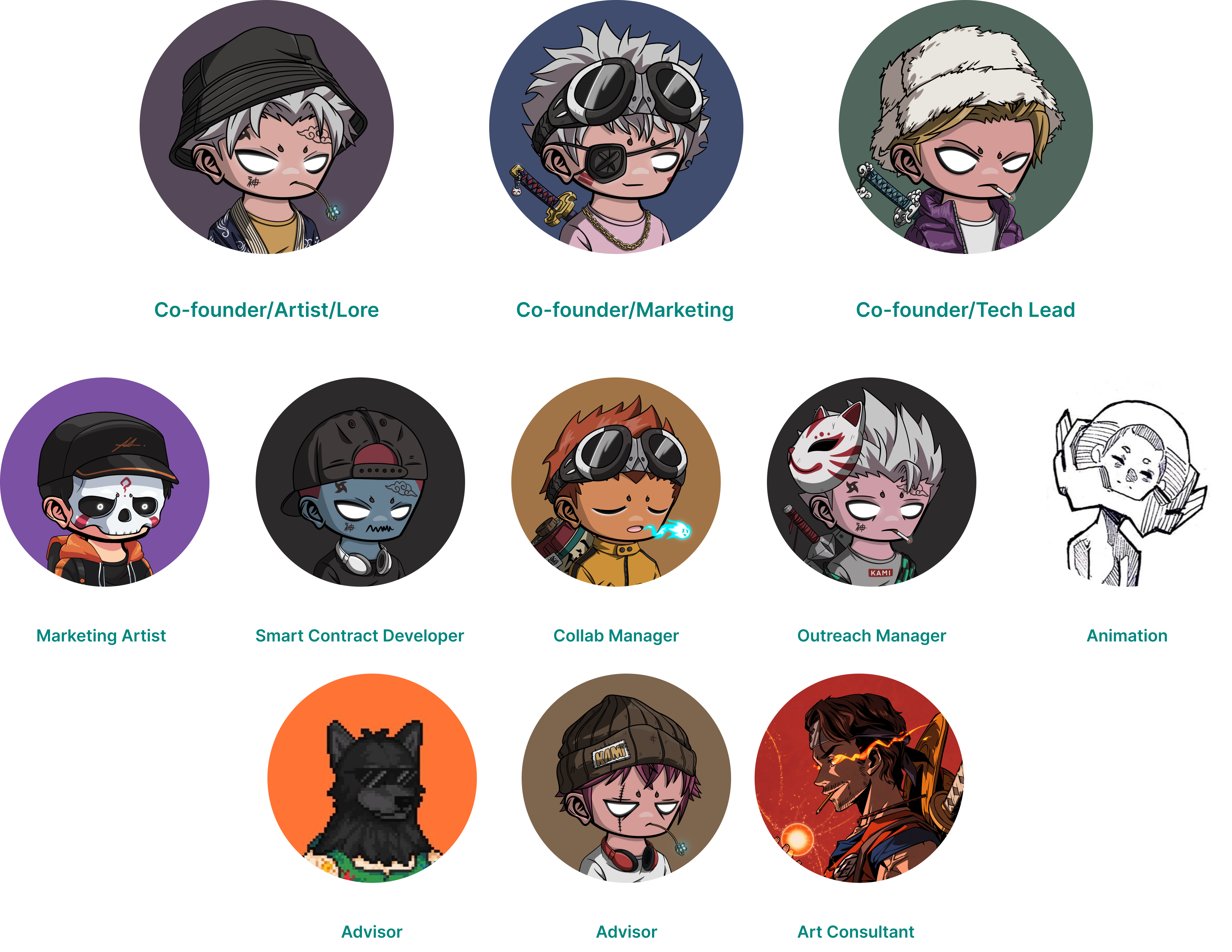 <figure><img src="https://2869431231-files.gitbook.io/~/files/v0/b/gitbook-x-prod.appspot.com/o/spaces%2FE40AgBXExxGfIFBSGckI%2Fuploads%2F4PKtfL2aKJjacosPdGP2%2FGroup%208.png?alt=media&#x26;token=de584419-dbc2-42cb-af28-a303a39c7b59" alt=""><figcaption><p><a href="https://twitter.com/0xKyton">Kyton</a>, <a href="https://twitter.com/0xJaxxx">Jaxx</a>, <a href="https://twitter.com/0x_DegenDev">DegenDev</a>, <a href="https://twitter.com/mixartmarquez">Mixart</a>, <a href="https://twitter.com/voidmanevoid">Void</a>, <a href="https://twitter.com/0x_Zeus0">Zeus</a>, <a href="https://twitter.com/0xVorw">VORW</a>, <a href="https://twitter.com/havtza">Havtza</a>, <a href="https://twitter.com/NoveltyRiku">Riku</a>, <a href="https://twitter.com/RealSOLInvestor">Sol Investor</a>, <a href="https://www.instagram.com/inkartluis/">Luis</a></p></figcaption></figure>